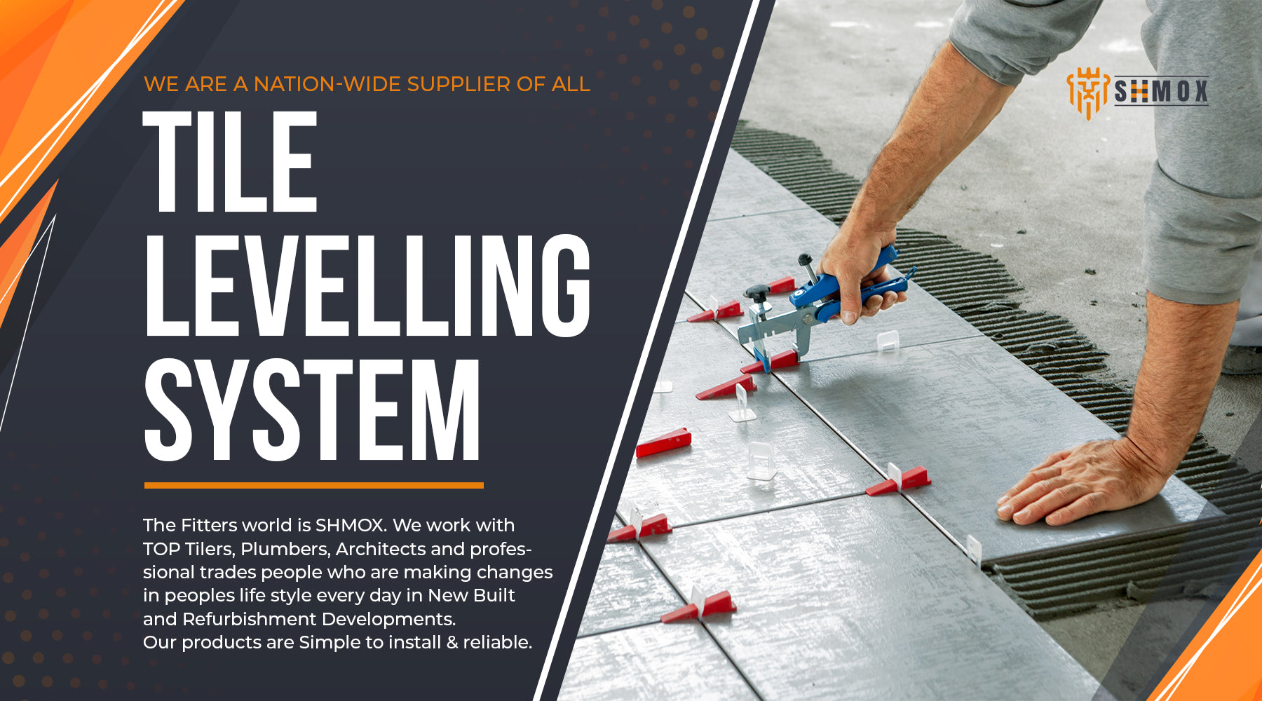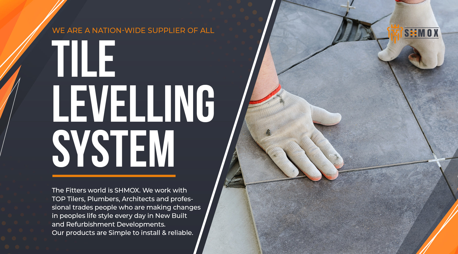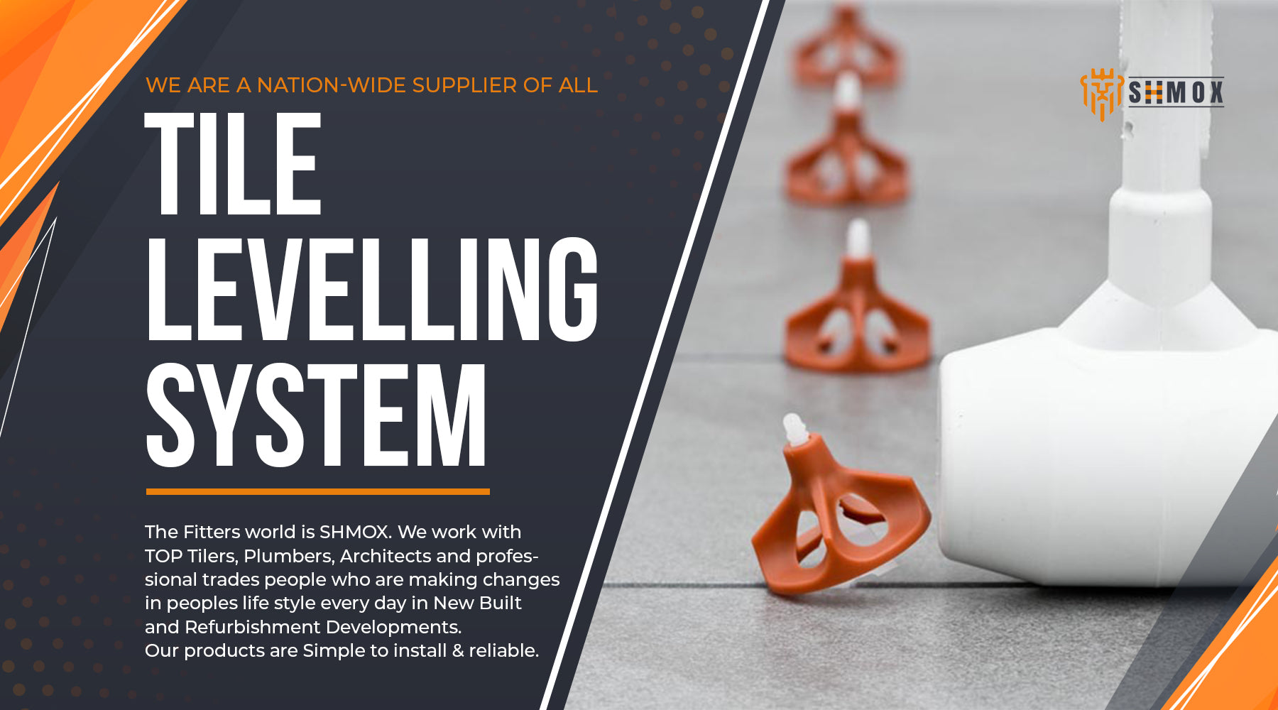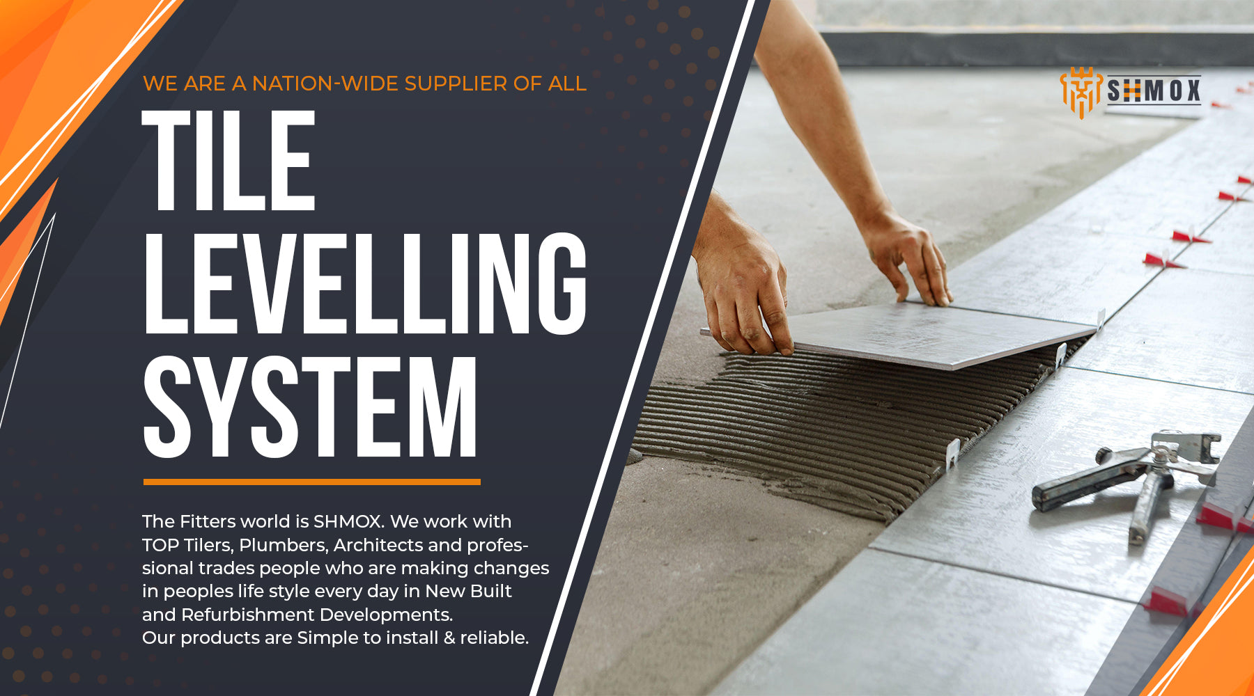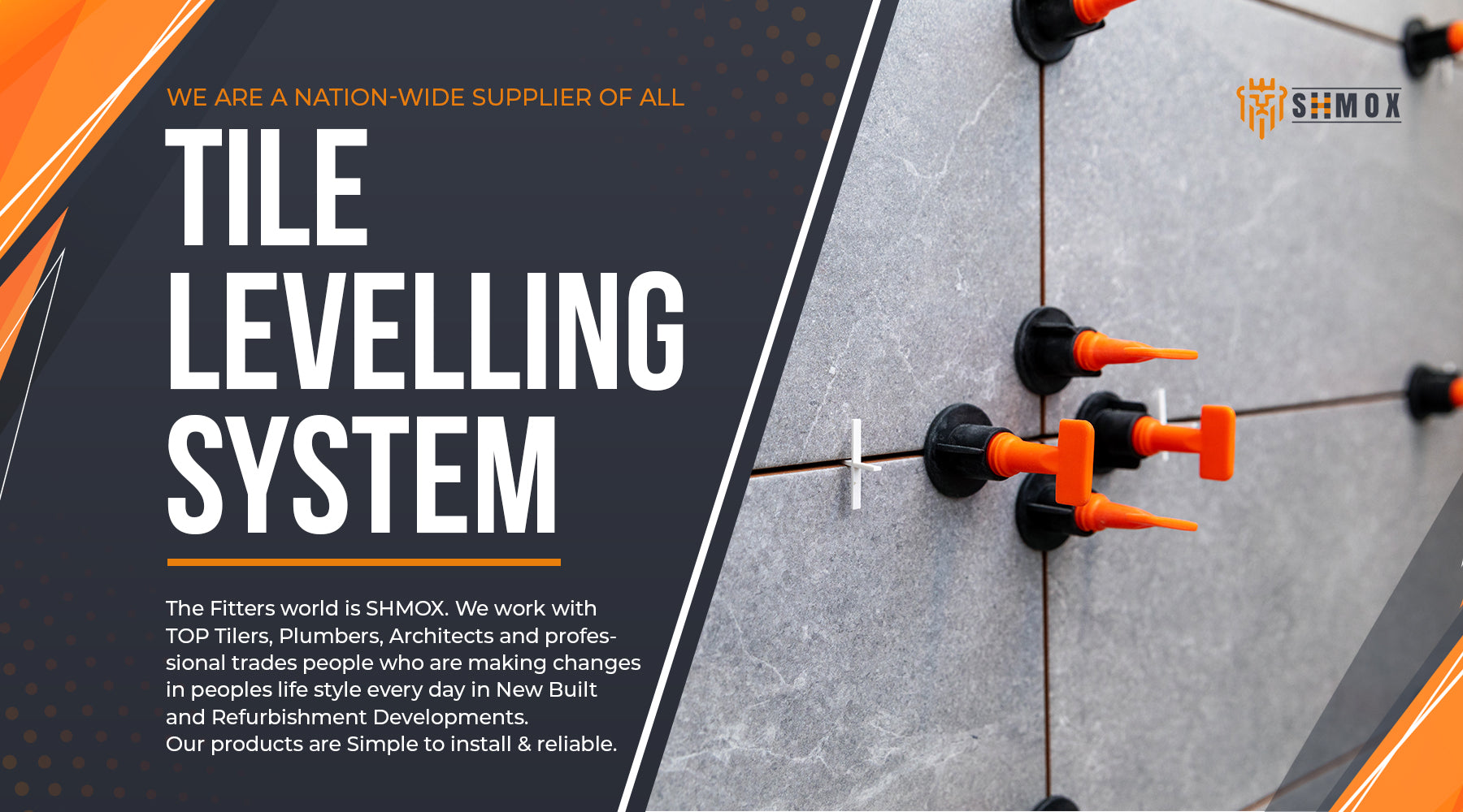 SHMOX is an established online retailer. We provide an extensive range of Tile Levelling Systems for a variety of different sized wall and floor tiles. We work with top Tilers, Plumbers, Architects and professional trades people who are making changes in peoples lifestyle every day in new built and refurbishment developments. Our ethos is purely focused on offering the best quality for competitive prices. Our products are simple & reliable to install. Have your Wet room, Bathroom, Tiles designed and fitted to a high standard.